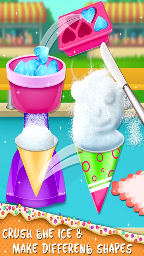 Let's pour slushy syrup on snow cone to make it very testy and yummy!! There are more than 20+ slushy syrup to choose from in Snow Cone Maker cooking game.