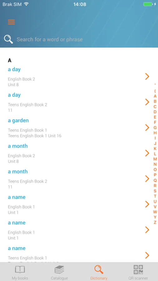 - Our app contains a useful dictionary in which you can find words in your book and jump immediately to the right place in order to practice them!