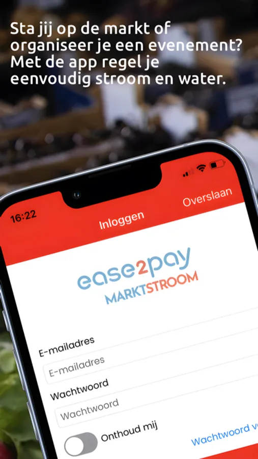 Ease2pay Markstroom is dé app waarin marktmeesters, festivalorganisatoren en kermisexploitanten zelfstandig stroom aan- en uitzetten.