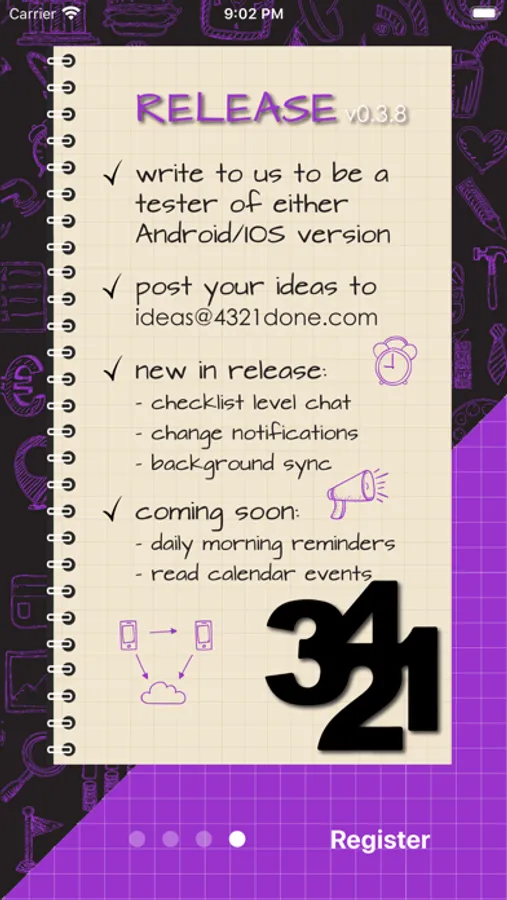 4321 Done is a simple, smartphone based, collaborative To-do list for those who work together to get things done.