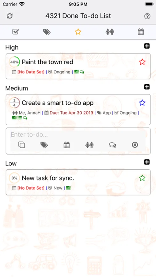 You can tag your to-do with any label that you wish - like Work, Home, Grocery, Shopping, Furniture Project, Launch Website, Fix-it, etc. You can even tag a to-do with multiple labels to cross-reference it. For example, a to-do ‘Send Invoice’ can be tagged with both ‘Launch Website’ and ‘Billing’.