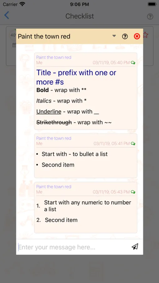 Now you can also share your notes/comments/conversations on any to-do using a simple mark-up language which will also allow you to link to files in Dropbox, Drive, iCloud, etc.