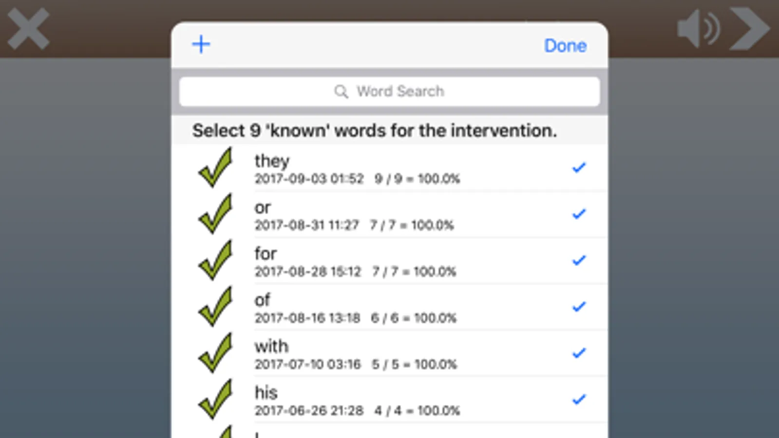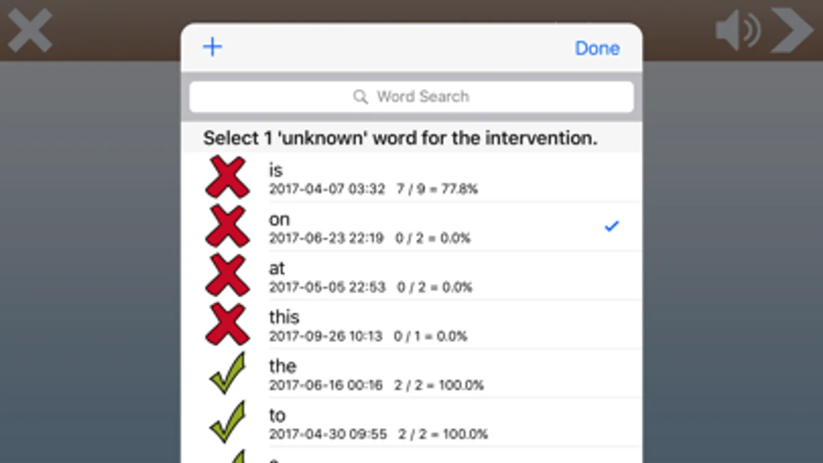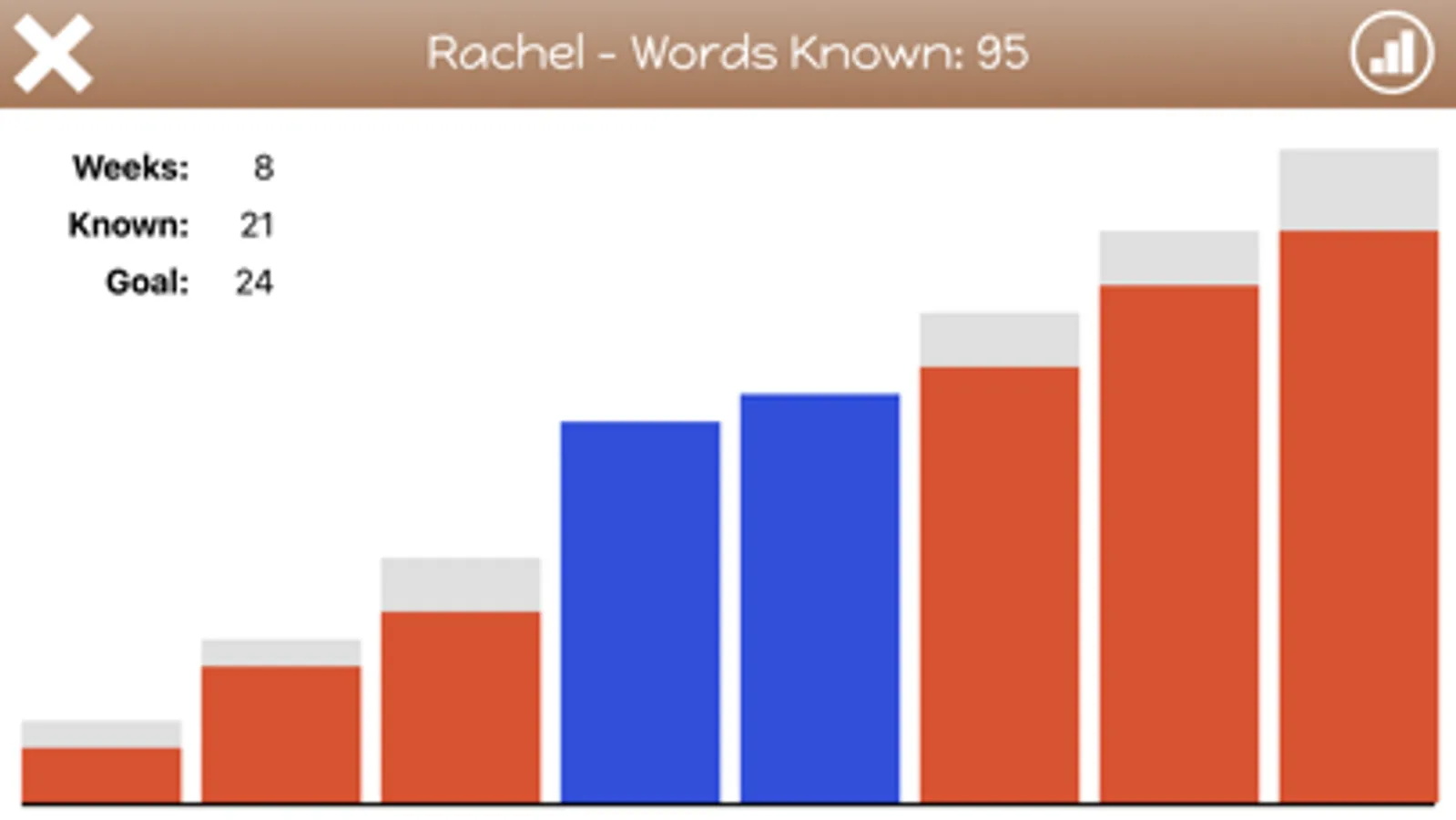 For each interaction in assessments or interventions, the facilitator records whether the student knows the words or not. The application tracks each and every word, automatically recording proficiency when the student reaches 80% for the word or marking the word as unknown if proficiency drops below the 80% threshold.