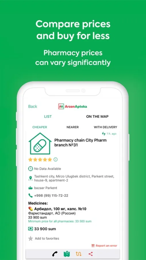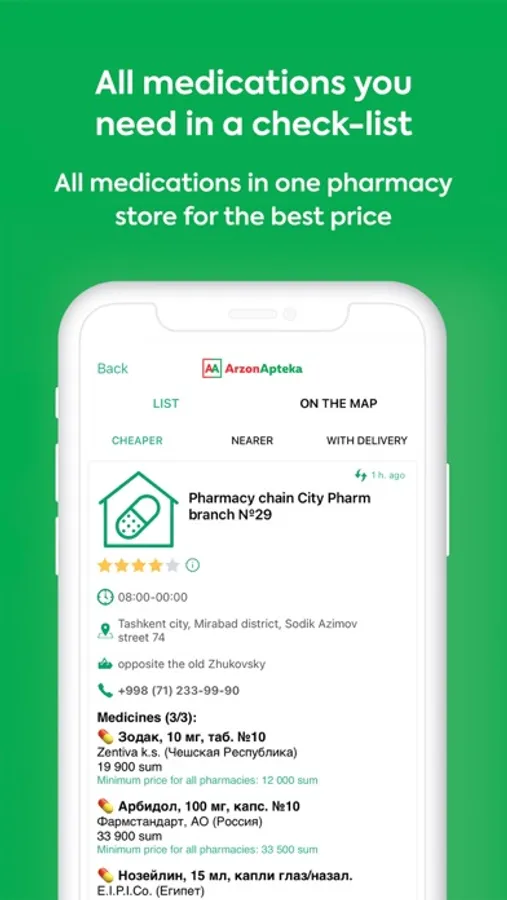 - Complete information about pharmacies (addresses, phone numbers, opening hours, location on the map);