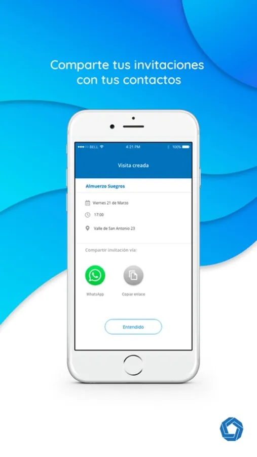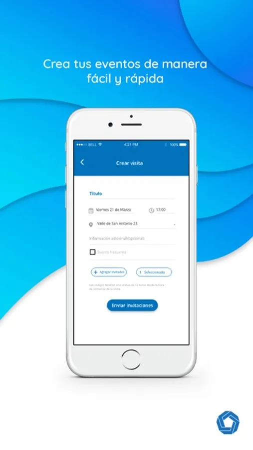 - Selecciona invitados desde tu lista de contactos, agrega ubicación y fecha de ingreso.