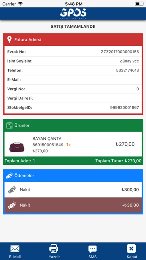 GPOS masaüstü uygulamasından sonra mobil kasa versiyonu ile tabet ve cep telefonu üzerinden kasa başına geçmeden satış imkanı sunar.