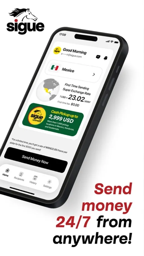 Sending money with the Sigue App is easy. It takes seconds to create an account and it’s free. Then just login to your account, and start sending money. You can send a transaction to the same recipient next time by just clicking on the recipient’s name. No need to provide the same information over and over again.