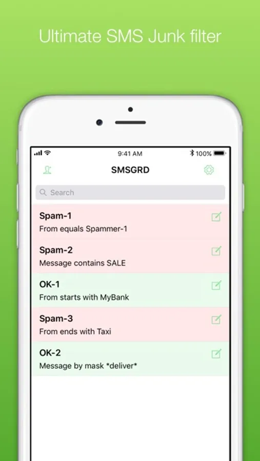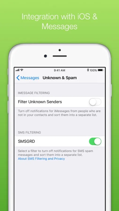 • iOS and Message app integration – filter udesired incoming text messages into a separate folder for SMS spam;