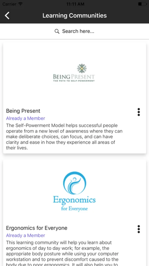 Browse, create, and join various learning communities and courses offered by experts in their fields. Each community can have various experts who share their knowledge and content.