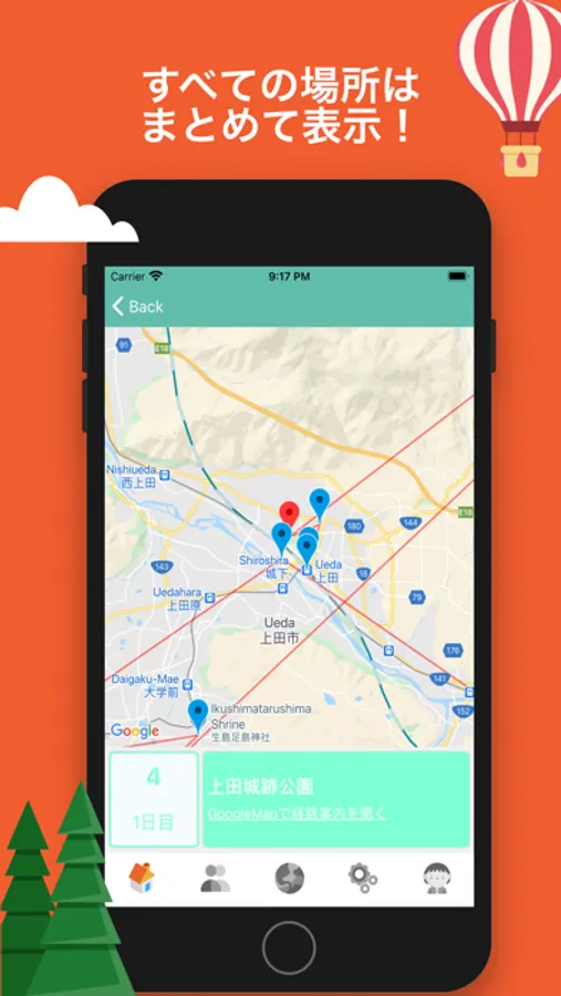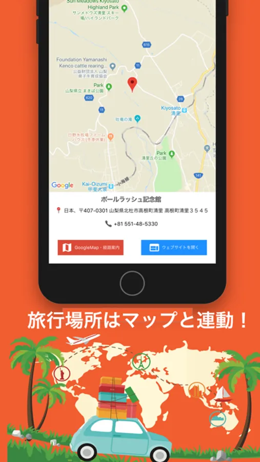 ・ GoogleMapと連動し、旅先では場所の確認や経路案内はボタン一つでできちゃう!