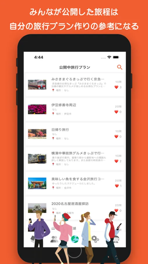 ・ 他の人が公開した旅行プランを「好きな旅行プランリスト」に追加できます。