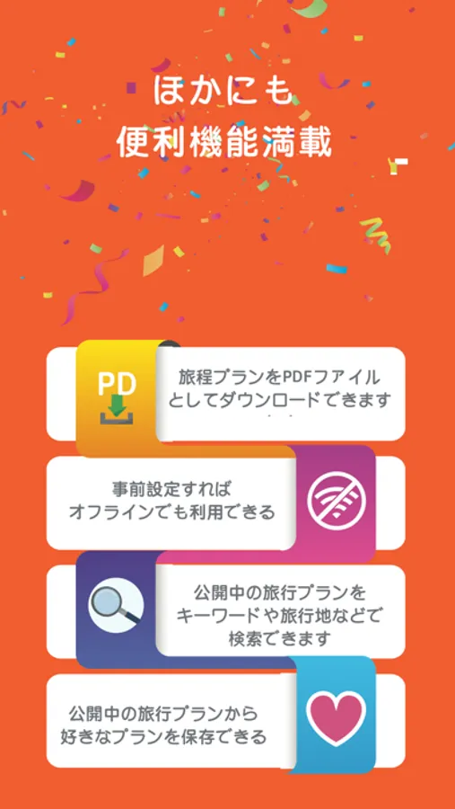 ・ 公開中の旅行プランを旅行場所ごとに検索できます。