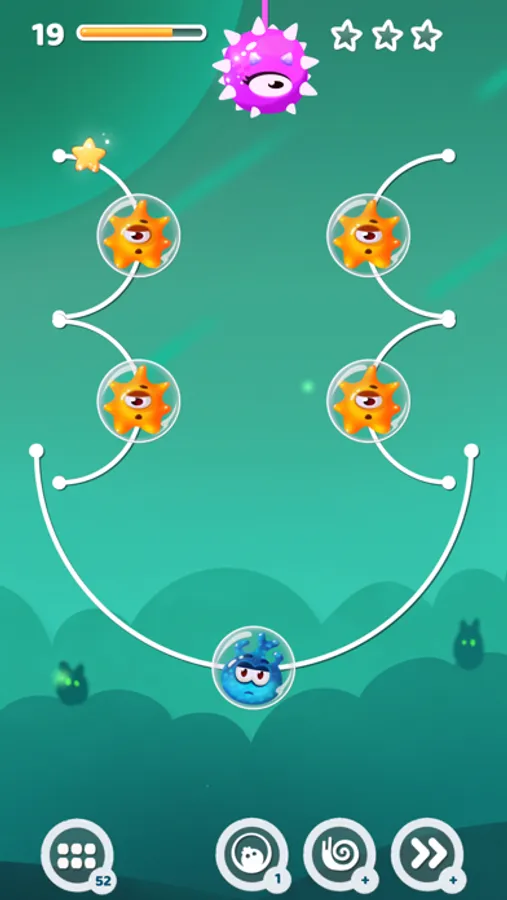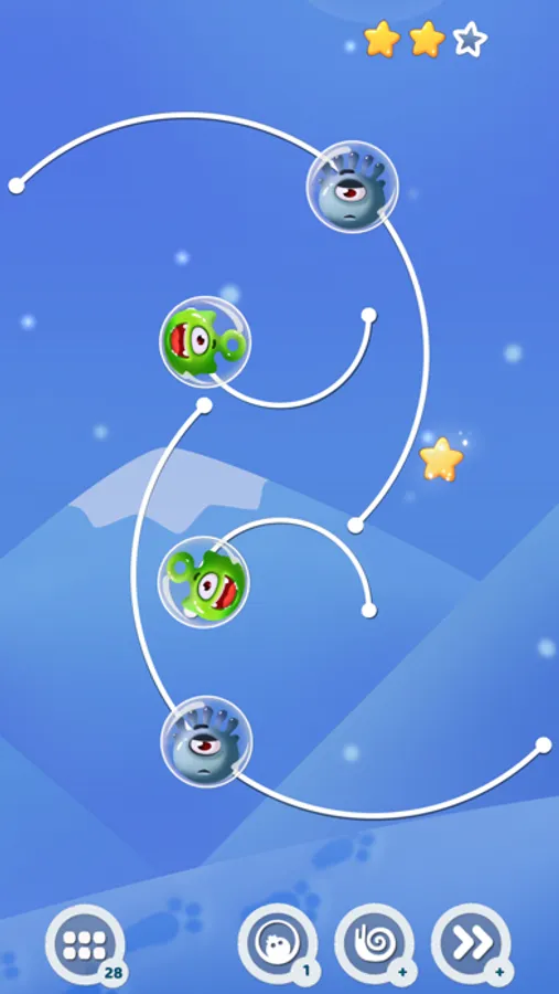 Tap the bubble monsters to move them in a pendulum like swaying movement along the arc. Time the taps carefully so that the monsters do not bump into each other. Get all the monsters in a level swinging to complete the level. Choose the order to tap monsters carefully and get all the three stars in a level.