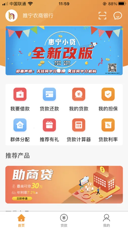 睢宁农商银行APP是江苏睢宁农村商业银行股份有限公司旗下产品,以发展普惠金融,为满足广大用户贷款需求为己任,利用线上平台优势简化贷款申请流程,依托大数据风控技术,为用户提供简单、快速、轻松的借贷服务。