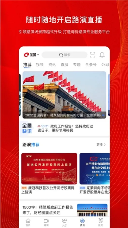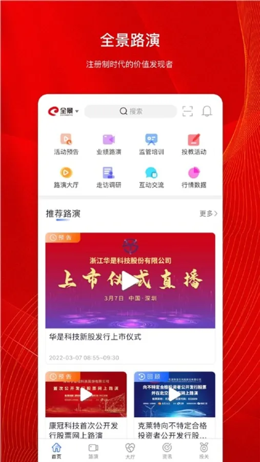 全景路演App,是注册制时代下,由网上路演开创者全景倾力打造的一款价值投资必备工具。