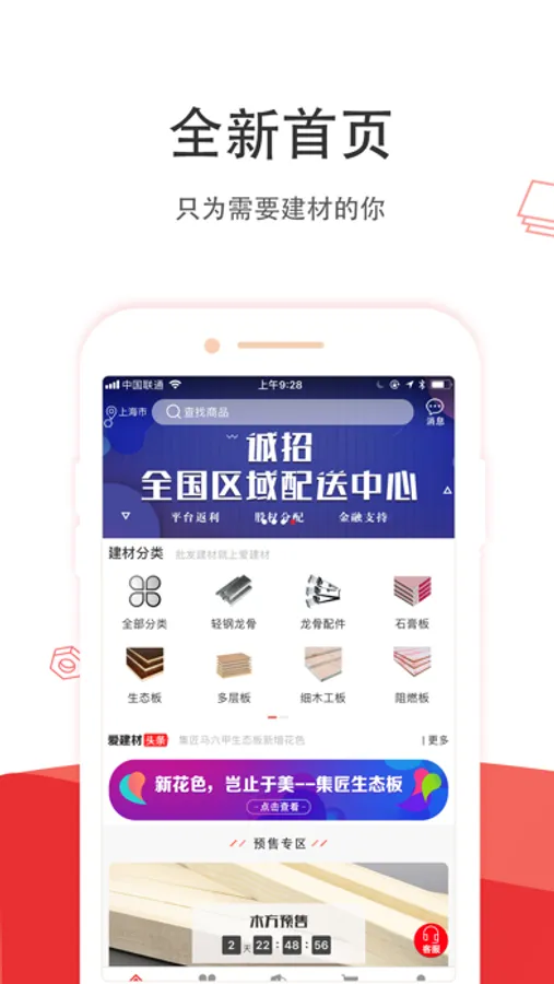 爱建材是一家致力于打造建材行业一站式批发的在线采购平台,核心业务包含隔墙吊顶、工程五金、装饰板材、物流运输四大类。目前经销商逾5000余家;为上游供应商提供精准的市场需求,按需生产;筛选业内拥有多年采购经验的精英组成采购服务部,为用户提供更高性价比的产品。