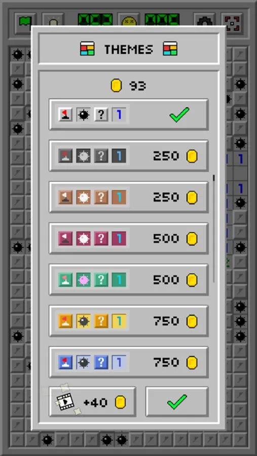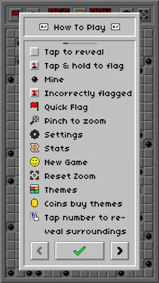 • 50+ gorgeous retro themes: Unlock these themes by earning coins. Earn coins for flagging mines and winning rounds