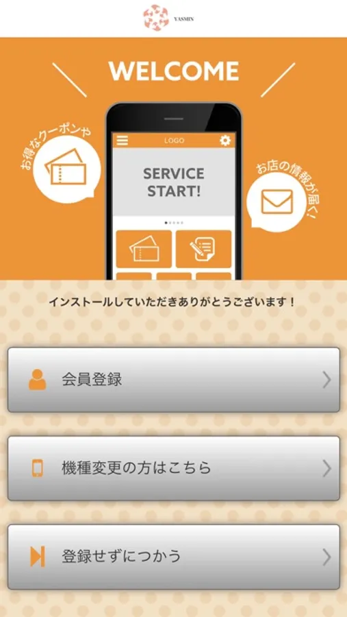 このアプリでは、YASMINの最新情報の受け取りや便利な機能を使う事ができます。