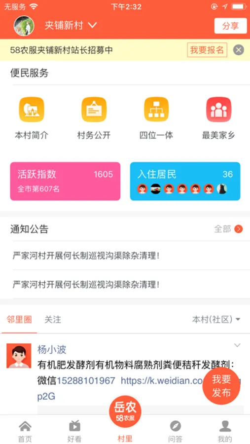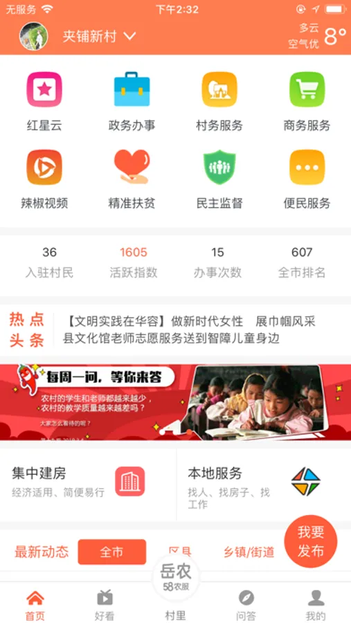 为了深化信息惠民工程,促进基层服务型党组织建设和经济社会发展,岳阳与58农服共同打造以党建为核心的“岳农”综合性服务平台,为563万岳阳市人民提供更加优质的党务、政务、村(居)务、精准扶贫、网格管理、民主监督等服务,构建岳阳“互联网+服务”特色模式。