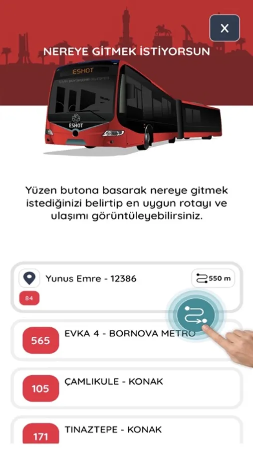 İzmir Büyükşehir Belediyesi ESHOT Genel Müdürlüğü’nün geliştirdiği ESHOT Mobil Uygulaması ile İzmir otobüs ulaşımına ait tüm bilgilere hızlı ve güvenli bir şekilde erişebilirsiniz.