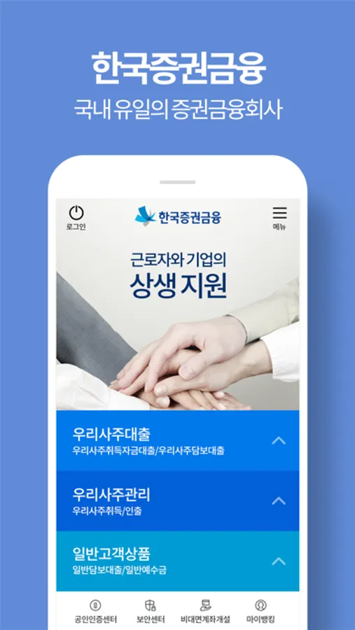국내유일의 우리사주 전담기구! 우리사주 대출신청부터 인출까지 통합 모바일 금융서비스 지원