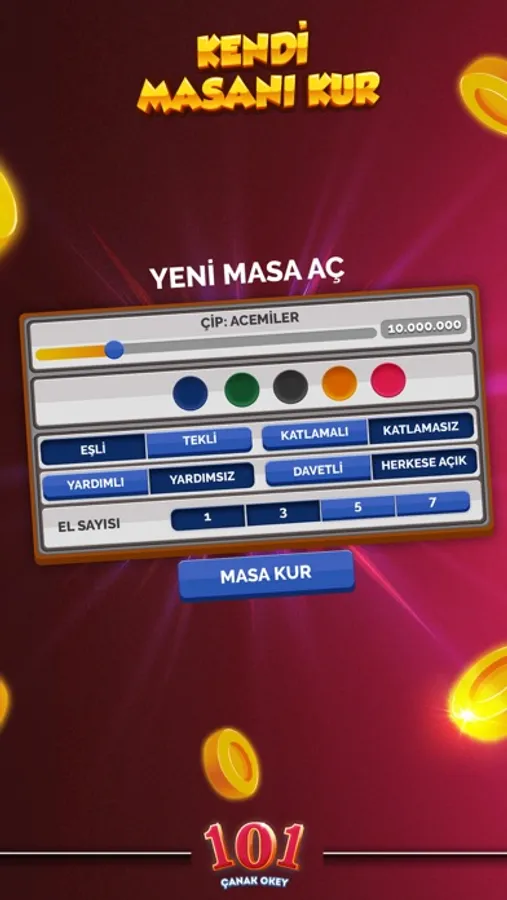 - Çiplerin biterse oyun içinde temin edebilir, ve 101 keyfine devam edebilirsin.