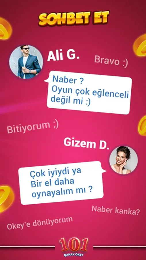 - Mynet 101 Yüzbir Çanak Okey oynayan arkadaşlarının masasına gidebilir ya da onları masana davet edebilirsin.