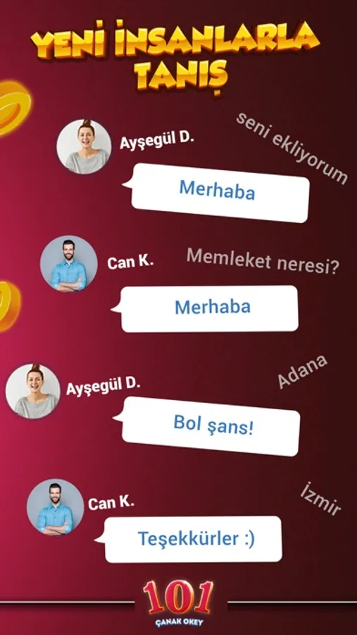 - 101 Çanak Okey tamamen gerçek insanlarla oynanan online 101 Okey oyunudur.