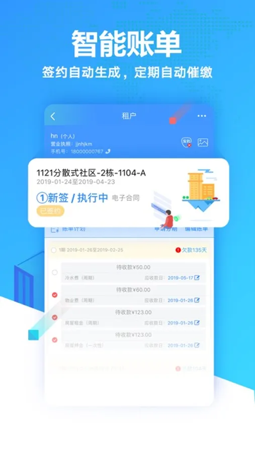 【房态操作】签约/续租/退房/缴费…全部租务,一键处理,方便及时,妈妈再也不用担心我身边没有电脑了。