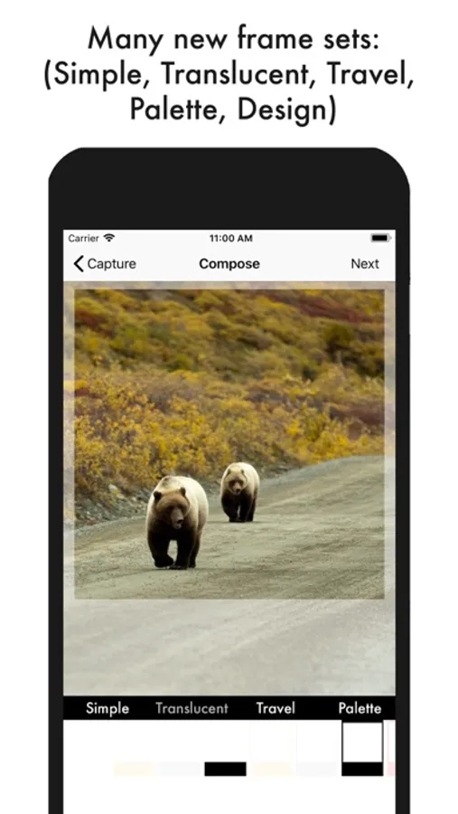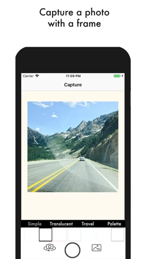 You can add beautiful frames to your photo. The frame is directly applied while taking the picture so that you know exactly how the photo looks like with the frame.