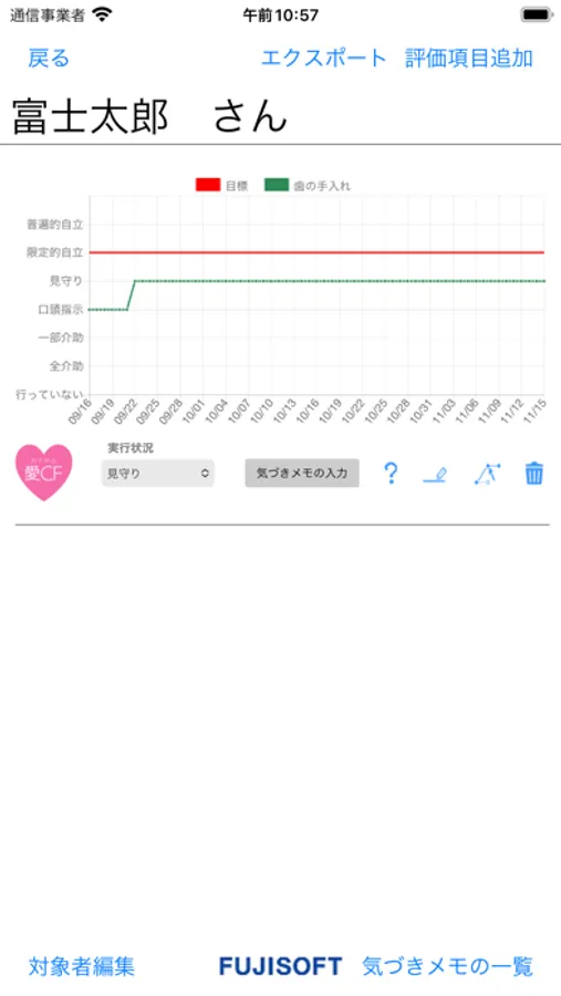 ・特記事項は”気づきメモ”で記録。音声入力も可能。