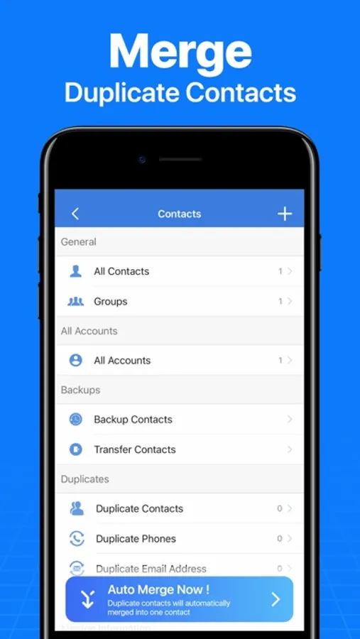 √ Merge duplicate contacts in one click.