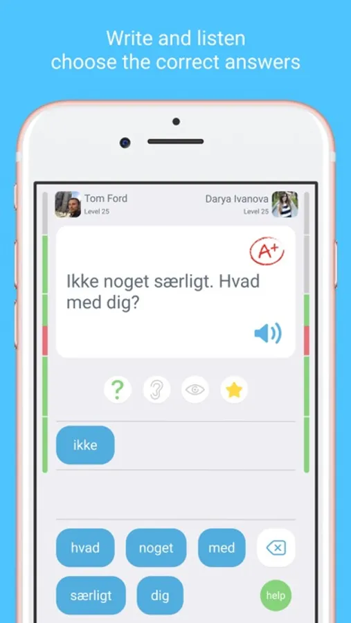 To succeed in studying the Danish language, you need to use the materials studied as efficiently as possible. LinGo has only the most necessary things to learn Danish language phrases and words as quickly as possible and reinforce the studied material. The more often you revise, the better you will know and be able learn to speak Danish fluently. If you already know and speak Danish well, you will have an even greater time guessing Danish words and memorising them with millions of users around the world.
