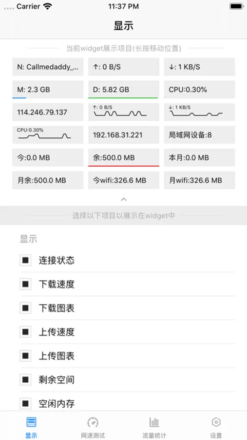 - 显示上传下载网速