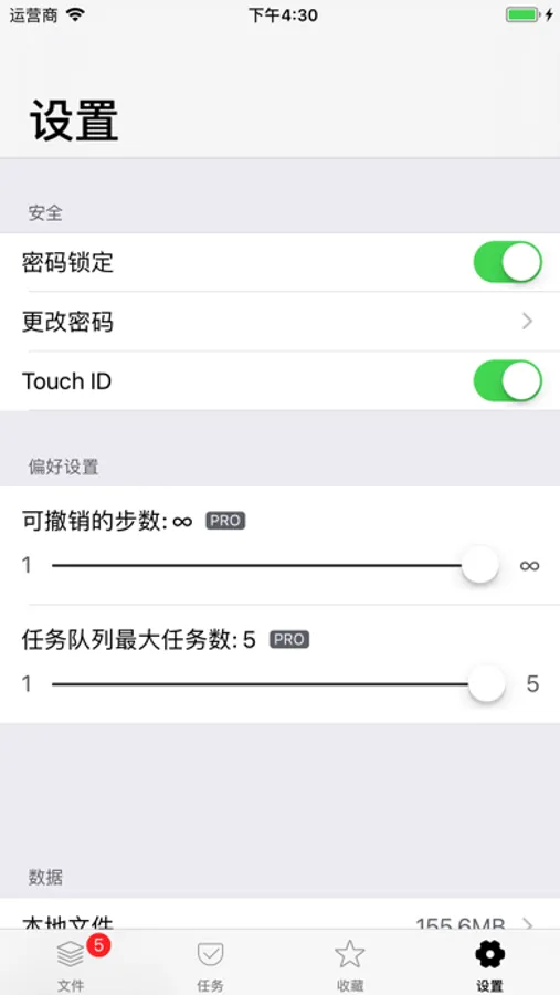 -Support the security of data within the app through passwords and TouchID.