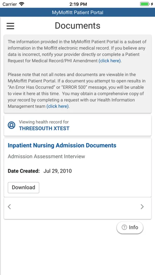 If you need assistance accessing your existing account, call 1-888-Moffitt or visit https://Moffitt.org/Patient-Portal/Support for support options. Personal health inquiries or concerns posted as comments in the Apple App Store cannot be addressed.