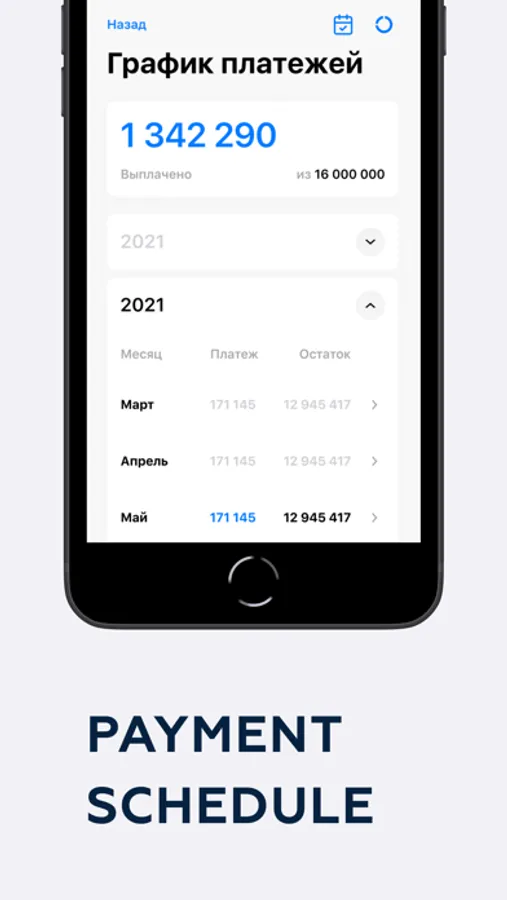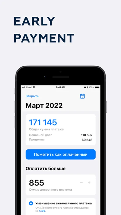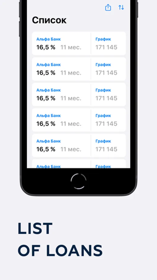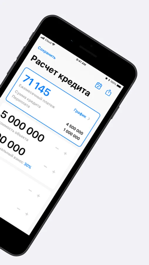 • Change the values of loan parameters by simply swiping your finger on the numbers;