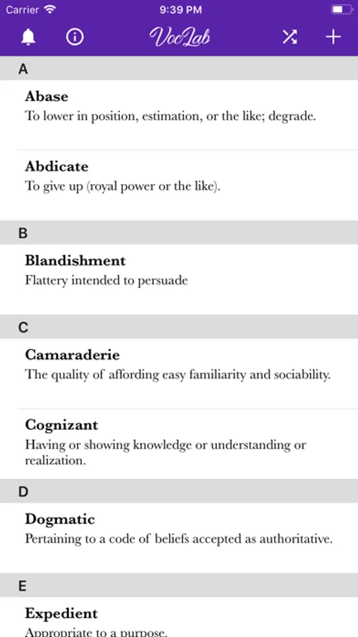 Abrogate, Blandishments, Cognizant, Dogmatic, Expedient ...