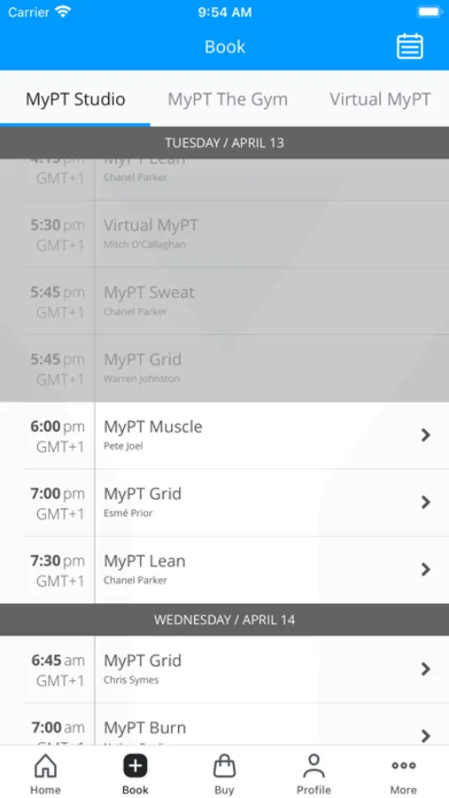 Book and amend your sessions quickly and easily, all within your very own MYPT Studio App!