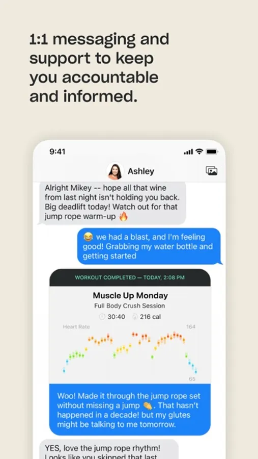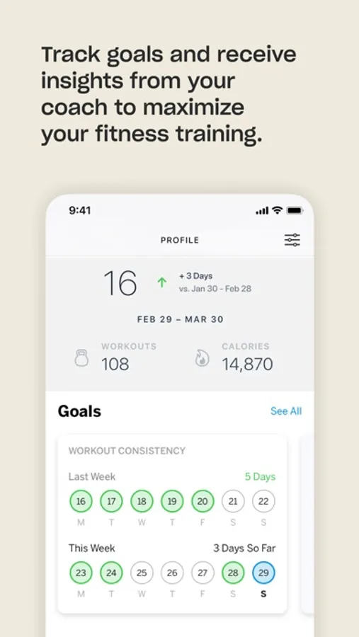 - Guided workout movements: Detailed audio and video guides for each movement, with the ability to have your trainer check your form whenever needed.