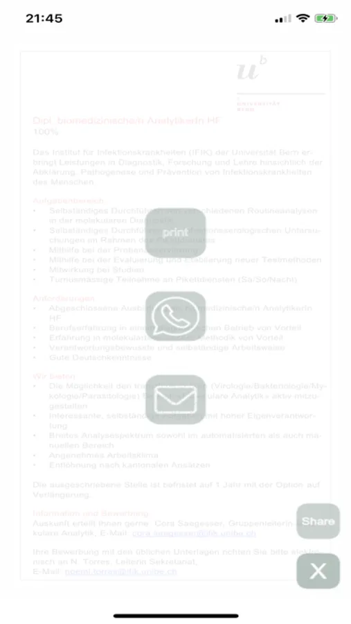 - Stelleninserate und teile diese via Mail / WhatsApp oder drucke das Inserat aus