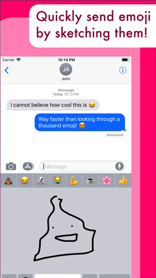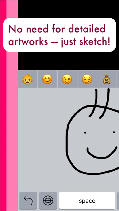 Emojiboard leverages the machine learning capabilities exclusive to iOS 11 to bring you a whole new way to find the right emoji! You just have to sketch. And it doesn't matter if you're drawing skills aren't all that hot — it's been "trained" to recognise thousands of sketches in different styles. Just a few strokes are typically all that's needed. Whether your "smiling poop" is an elaborate series of nested ellipses or just a triangle with a face on it, Emojiboard knows what you mean (though perhaps not what you're trying to say... what's that one about anyway?).