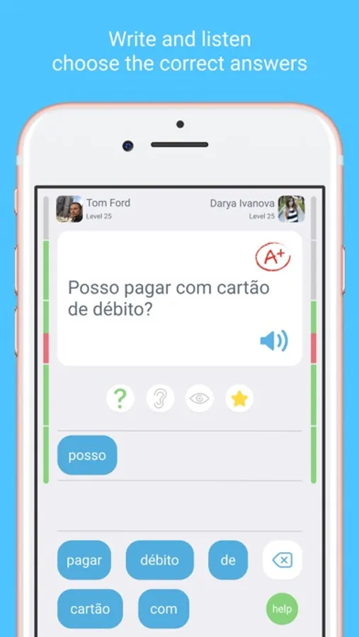 To succeed in studying the Portuguese language, you need to use the materials studied as efficiently as possible. LinGo has only the most necessary things to learn Portuguese language phrases and words as quickly as possible and reinforce the studied material. The more often you revise, the better you will know and be able learn to speak Portuguese fluently. If you already know and speak Portuguese well, you will have an even greater time guessing Portuguese words and memorising them with millions of users around the world.