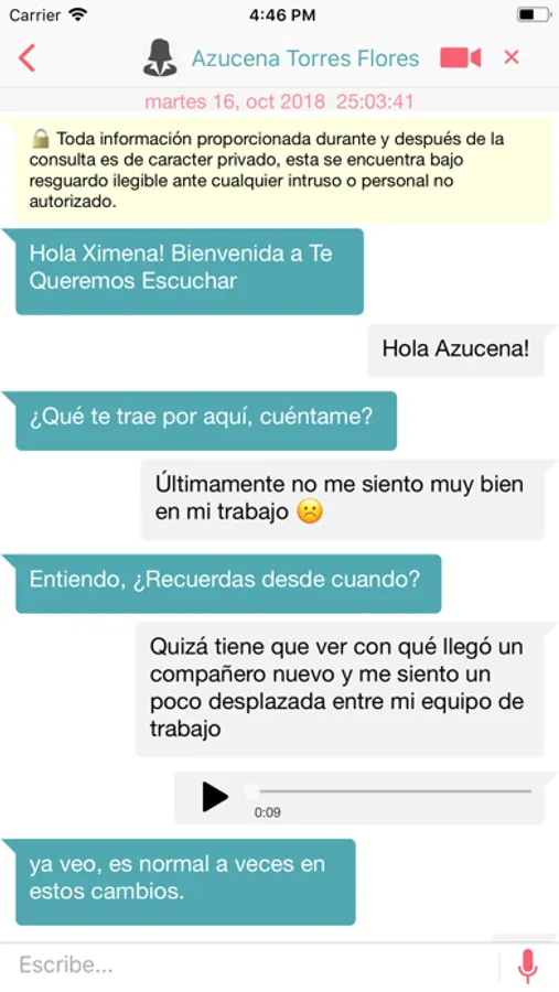 Tenemos horarios extendidos de lunes a domingo, donde tú puedes escoger el que más te convenga. Las sesiones tienen una duración de 50 minutos donde por medio de chat, notas de voz o llamada telefónica.