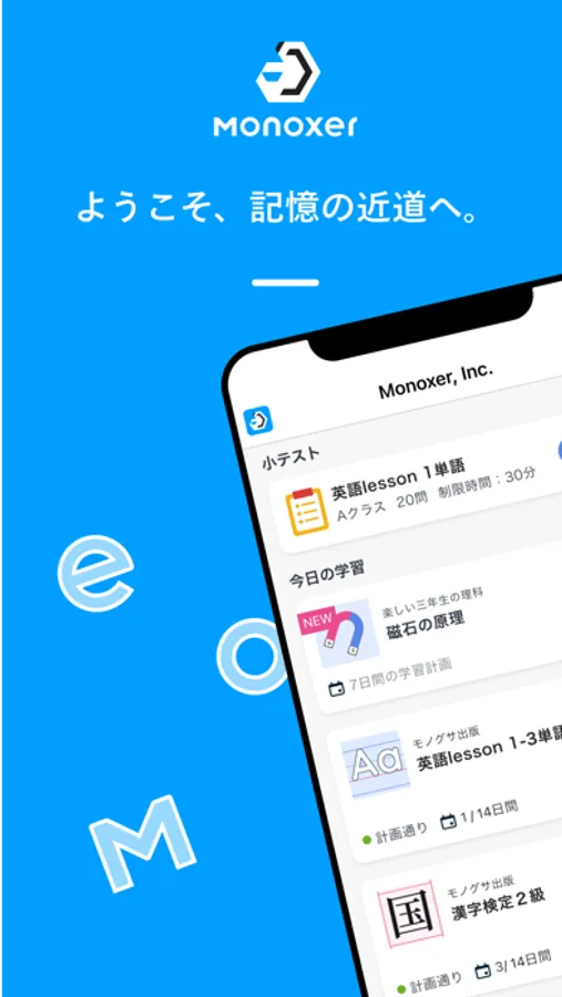 Monoxer is an application to acquire & absorb knowledges you want by the effective learning. Monoxer analyze your habit of memory by using your learning history, and create appropriate questions automatically to acquire knowledges.