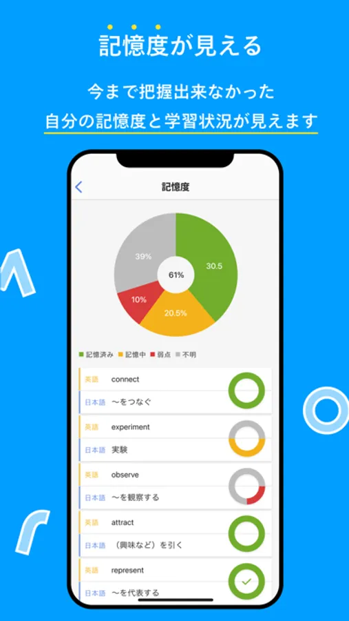 Monoxer show you your memory status of each books when you learn a book on Monoxer.