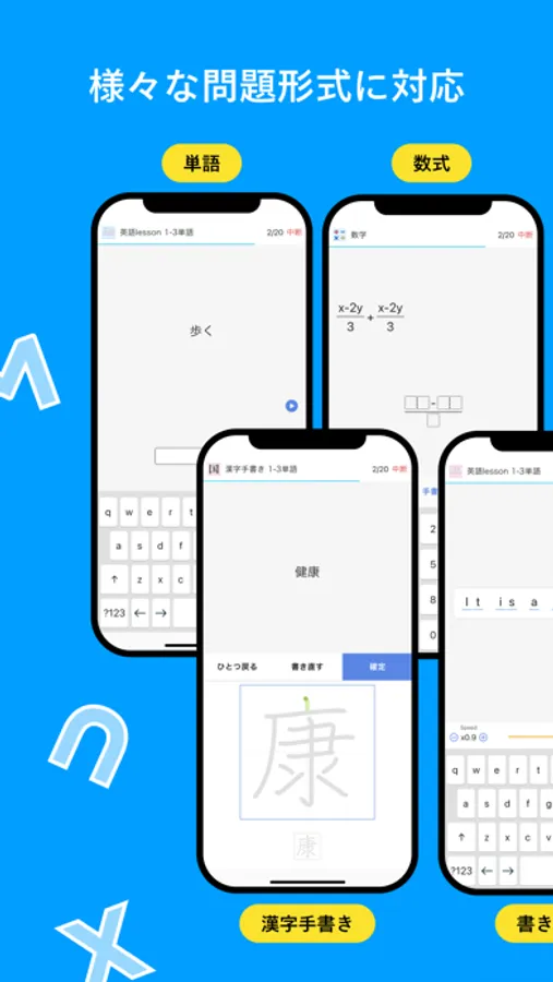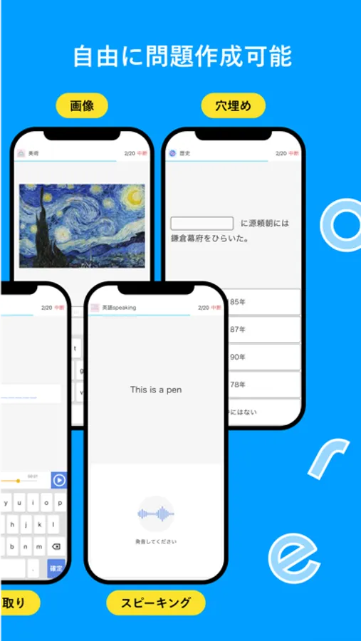You can solve questions in various forms, for example, choices, input, shadowing and more.