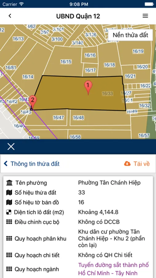 + Xem thông tin bằng cách bấm trực tiếp vào thửa đất trên bản đồ.