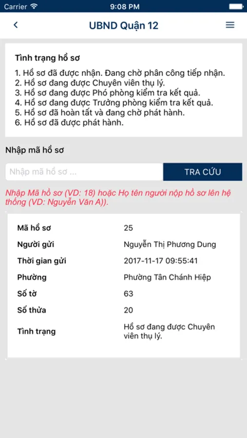 - Tra cứu tình trạng hồ sơ đã nộp.