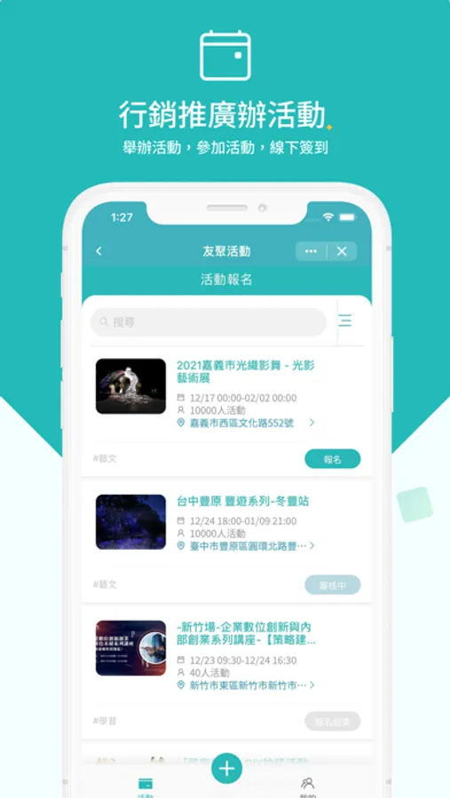 當您的經營開始上軌道,需要開始舉辦線下實體活動,Lale也提供免費的辦活動微應用 - 啦活動。啦活動可以讓您主辦、發佈活動,同時瀏覽活動內容,尋找有意思的活動去報名和簽到。